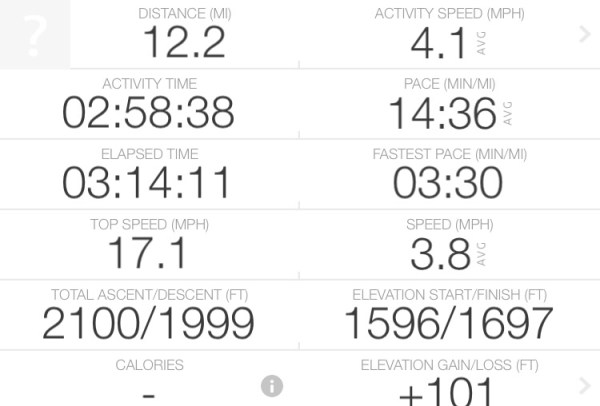 I forgot to start the tracker for about .2 so adding that to our total. You can see the blue dot is our supposed start vs the red where we actually started/stopped. This also added about 5 minutes. We were moving out in the start.