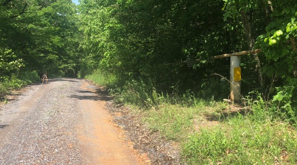 It pops back out on the fire road and we make a right. Of course left is another option for miles and miles of fire road.
