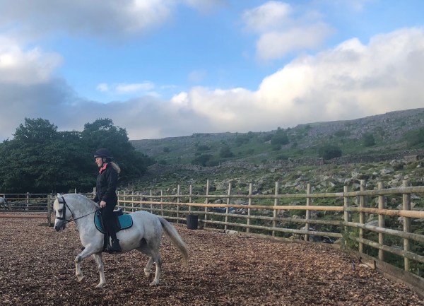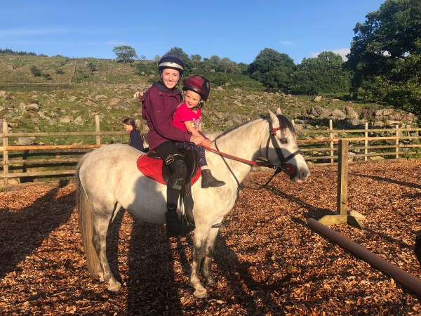 Grace let Eliza ride her show pony Scotty! Look at this little pony go. And only 5!