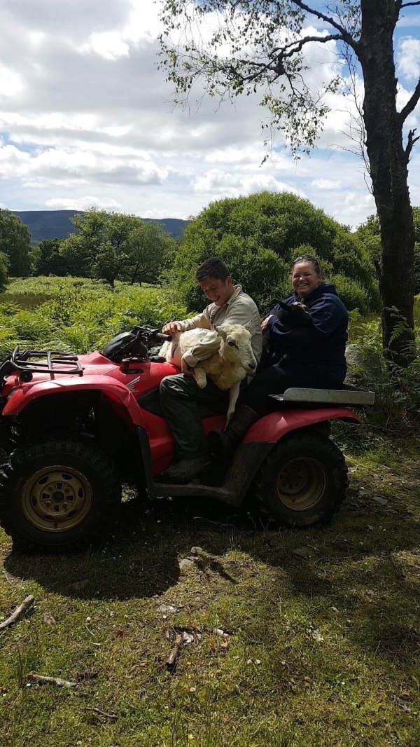 Amy came and picked me up and we spent the day playing around. First we went off on the quad looking for a lost sheep and lamb for Garrin. Which we found! Garrin came down to help collect them – which was neat to watch. I tried to get his whistling for it on video but I wasn’t quick enough.