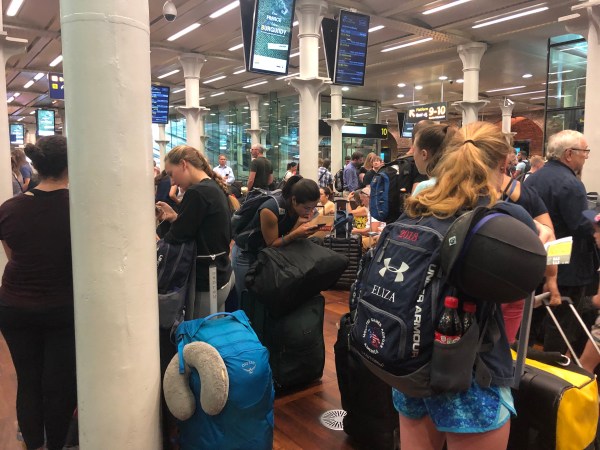 It’s crowded but customs was easy. We could even keep our drinks in our bags and our shoes on. We did have to check our passports with the UK and then the French/EU customs.