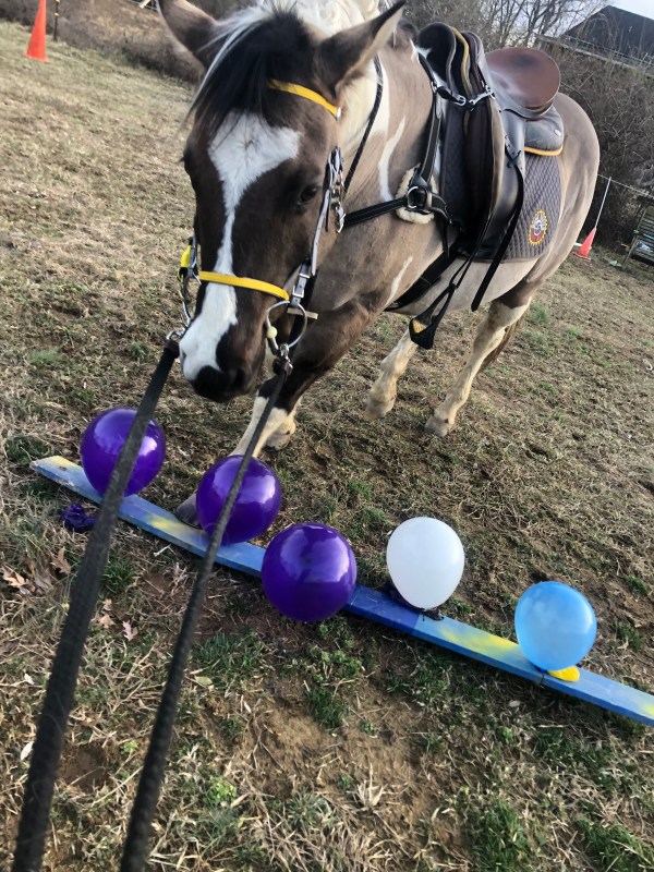 I am super happy with Possum. He got a nice workout for his brain and his body while making him a more educated pony. Although I am sure I will need to do several more balloon sessions, which I am looking forward to. Mr. P. gets an A for today.