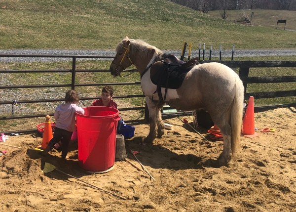 I brought Simon along for a newer player to ride. He seemed to have a really good time and Simon always enjoys working with newer riders. Possum was a bit wound up and screamy in the beginning. During and between games he would look for Simon but he came back to focus when I asked and still played his game. I am not sure how much of it was having Simon there and how much of it was being in a ring full of other ponies that had him charged up. He still pawed and did not always stand quietly but he quieted down after about 20-30 minutes. This all made it an exceptionally good practice for Possum and I on a distraction level.
