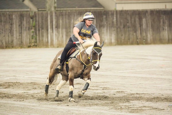 As for my team, they all came together for session two but admittedly session one was rough. Val and Jon are usually clean players (we all are) and they both made a few mistakes, which is very out of character. Their ponies are the fastest on our team, Babyface especially. When Val starts and she is “on” she rocks up and back faster than anyone. Last year Babyface would Flintstone at the tuen sometimes, loosing that speed lead he had acquired, looking around with a deer in headlights expression . Now his turns are getting smoother and smoother gaining him a tidy lead.