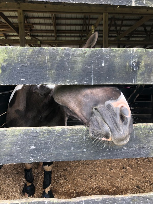 After session one, Leigh Ann, Matt, and I were able to put our three geldings out in the little paddock for a bit. As expected the three were too busy eating to care about each other. This seemed to really help Possum. He was much more relaxed when I mounted up for session two. I also added a running martingale. The combo of pony mental break and martingale seemed to go a long way. In the first race he hit the martingale and was like “OH” and on we went. He was so much more focused and ready to work as a team. Perhaps he just needed a session to settle in, which is not too out of the ordinary for a new games pony, but he better start getting his game face on quicker.