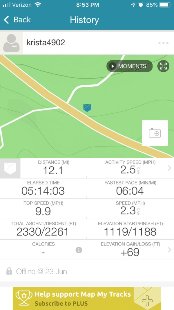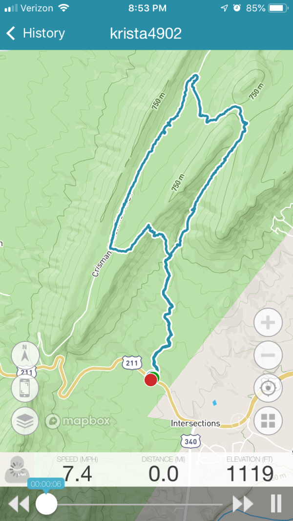 Let me finish this report up by stating that I had about two miles left to go and luckily I had cell reception and my loving husband picked up when I called and rushed out to meet me at the trail head. I’ll detail the finger on my next post.