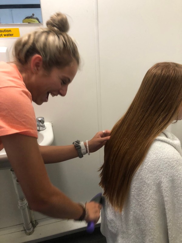 Abby did a fantastic job trimming up Mikayla’s hair. How pretty.
