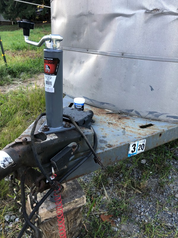 There were plenty of jacks to pick out. I selected one that was rated for well more weight than I needed and had the correct amount of lift. I considered the electric ones which were way more affordable than I would have thought but ended up selecting a gray economy one by Bulldog that would match my trailer. It was about $65 after shipping and arrived in about three days.