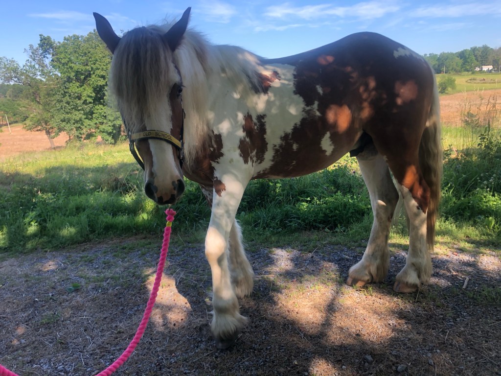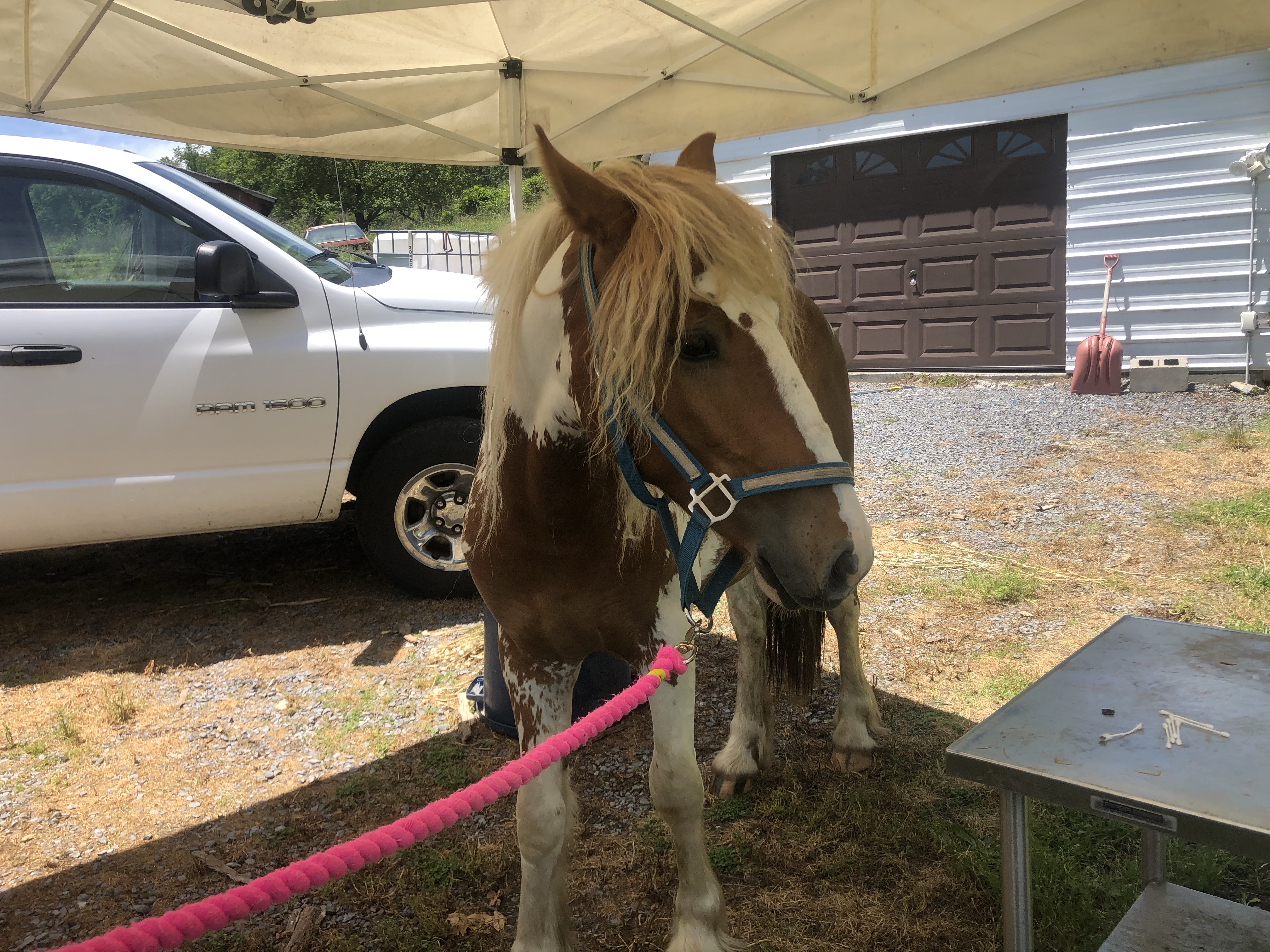 I got home with Dex on Saturday and woke up excited to play with him on Sunday. I brought him in from the big field to the yard paddock. Rich brought Simon in as well. Rich also had a “work area” set up in the driveway we needed to work our way through to get to the gate, and Dex did not care. He stood under the canopy and navigated all the equipment and tools. Rich even held him for me while I ran to grab something.