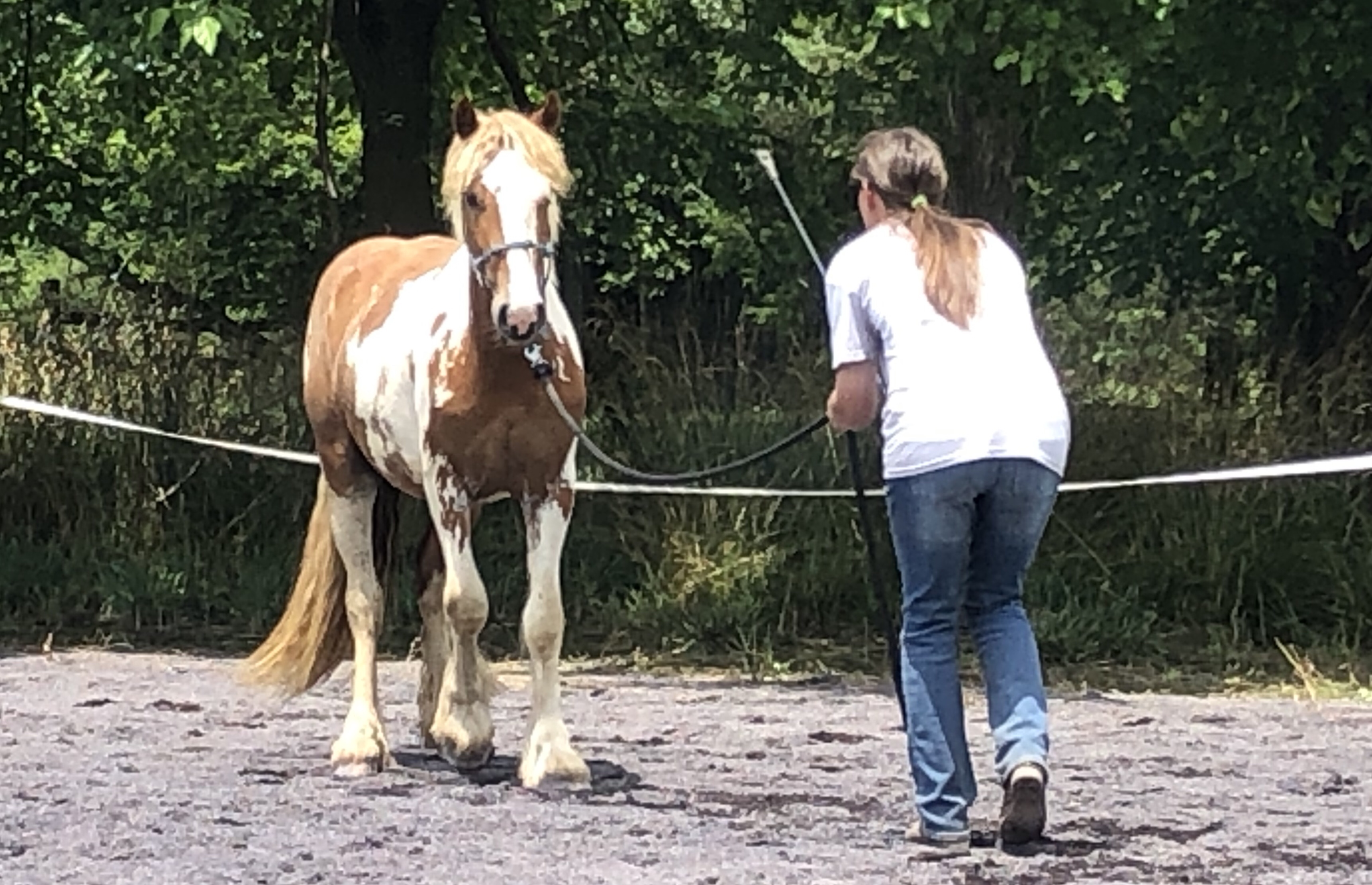 She started off with the whipping, then the lunging, onto backing, turning, etc. I have included a little video at the bottom that starts off right from the beginning of Jenny working with him. (And then I mostly videoed the ground – on accident)