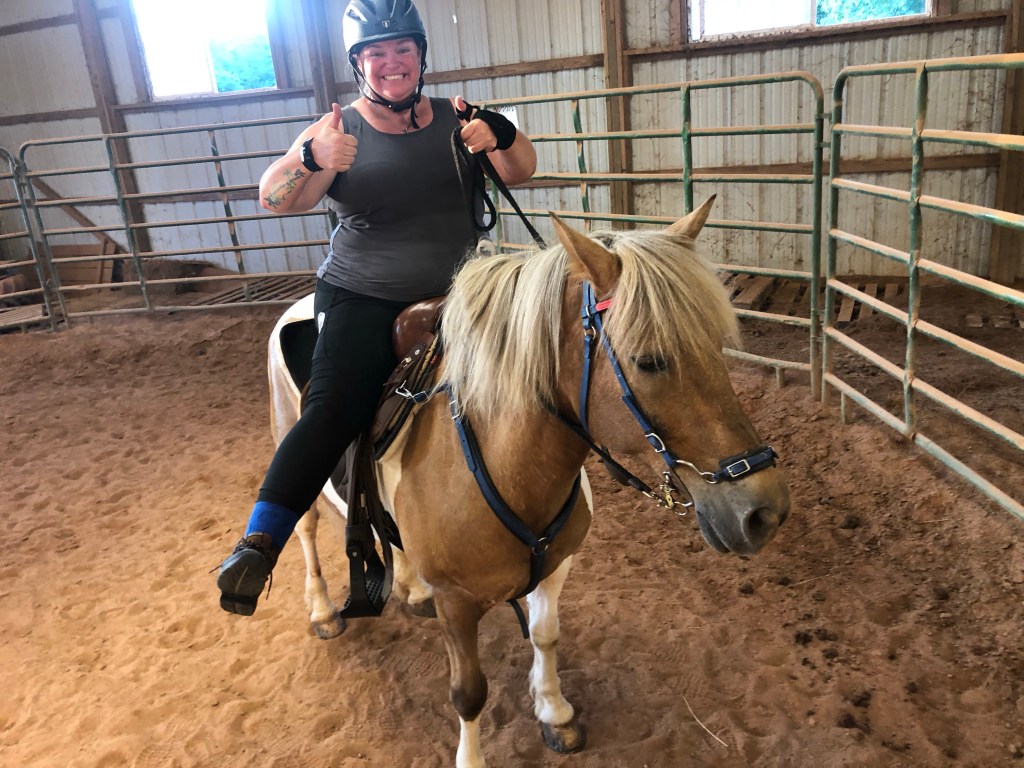 The next game was similar to that electronic game “Simon” with lights that light up requiring the person playing it to hit the buttons in the same order, adding a new one each time. We lined up and started over the obstacles with rider one picking an obstacle, editing it in anyway they wished. After the last rider completed the obstacle they added another, and the circle continued. This was also a lot of fun.