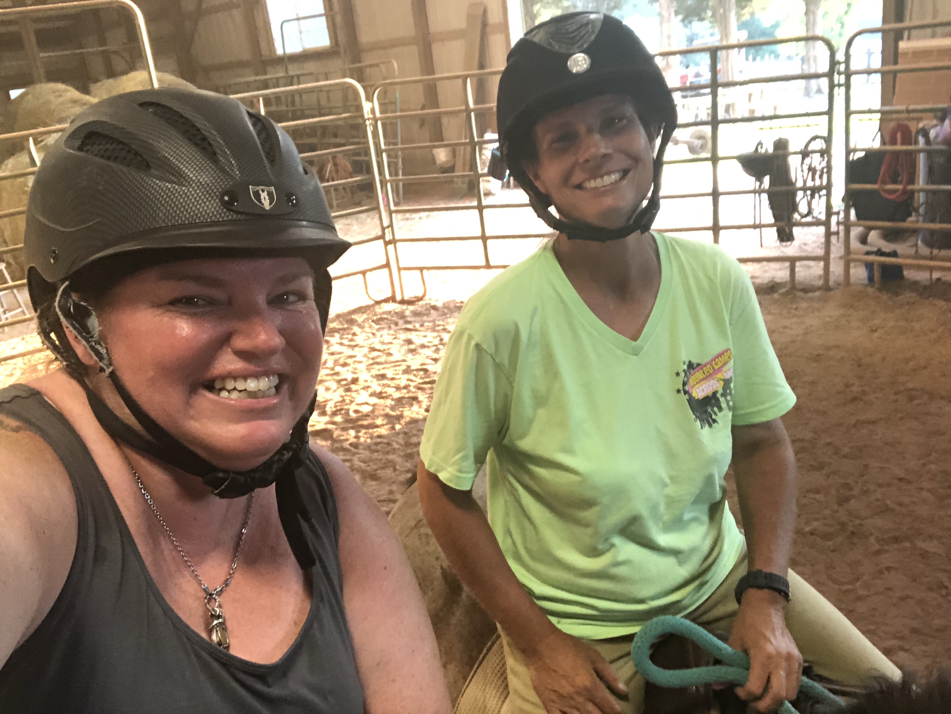 The final game for the night was sort of an equine version of basketball horse. One rider selected one of two obstacles and added a twist. Each rider then took the challenge to do the same thing. We were all laughing and cheering each other on. Jenny managed a double MGAA Games style obstacle by “hoopla-ing” a tall cone, then dismounting and going through a hula hoop. Anna upped the challenge by putting the hoop over her horses head. And later Elizabeth upped the bridge obstacle, which was modified by crossing it twice in a figure eight, by taking off her bridle for it.