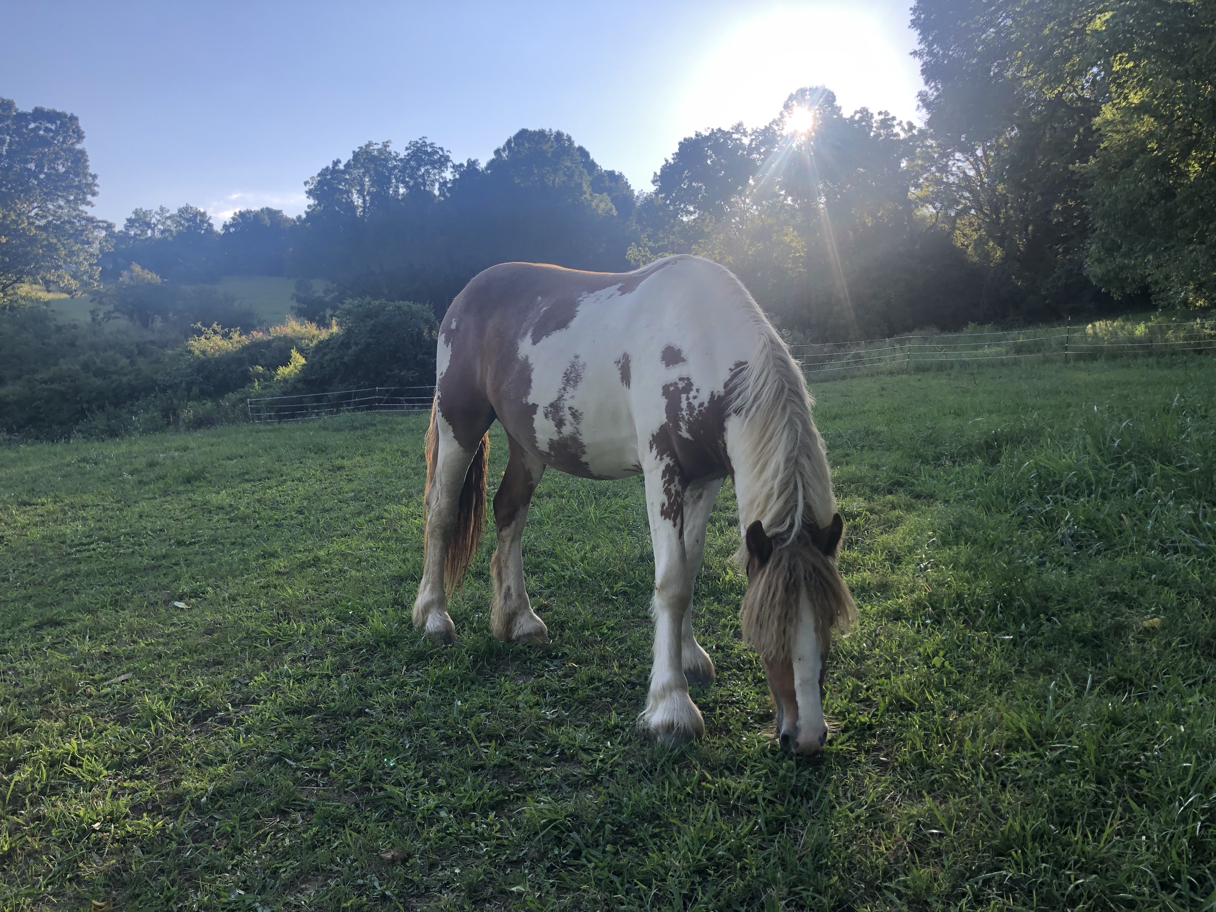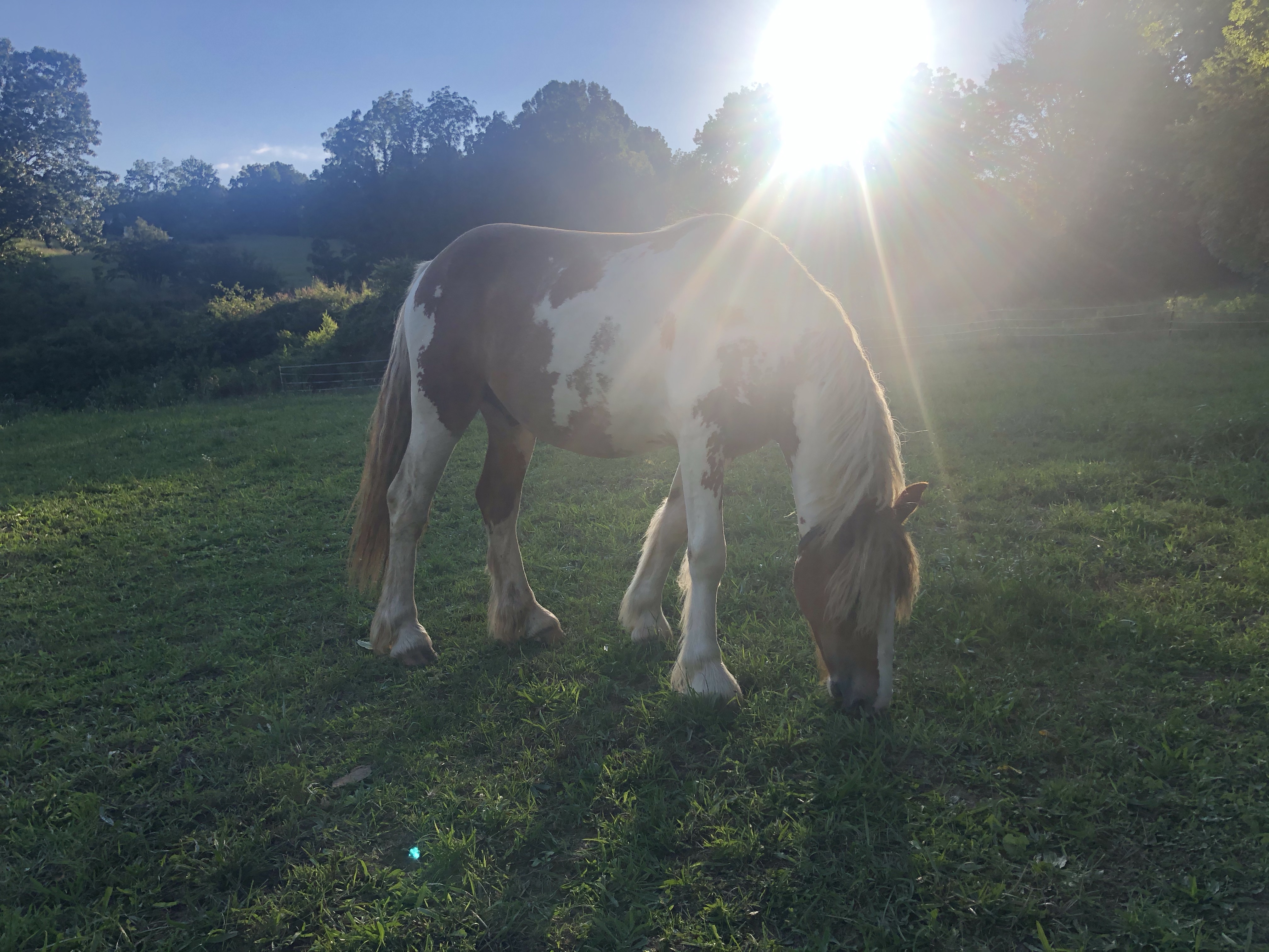 He loves to follow me around the field. I snapped these in August when he stopped for a nibble.