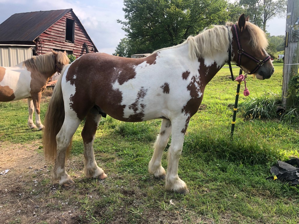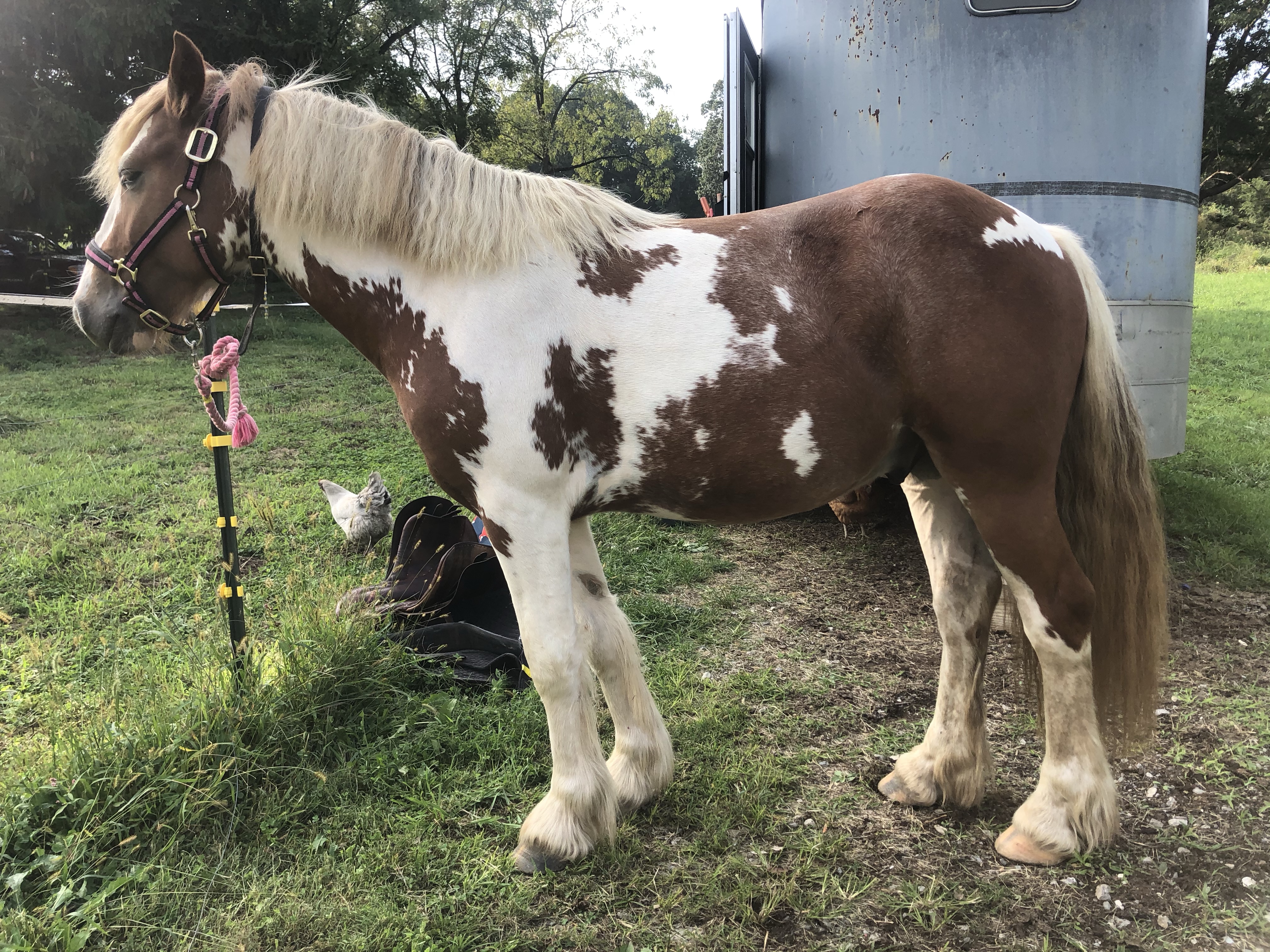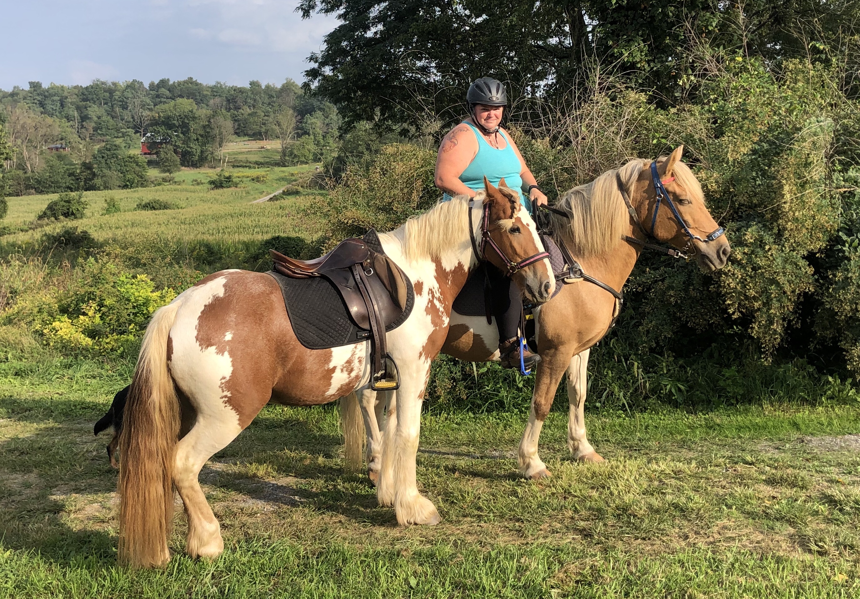 This evening I put a saddle on Neville and ponied him off of Simon around the farm. He did not care. I left the stirrups down so they would bounce around on his side and he could get used to that. And I braided his forelock so he could have optimal visibility.