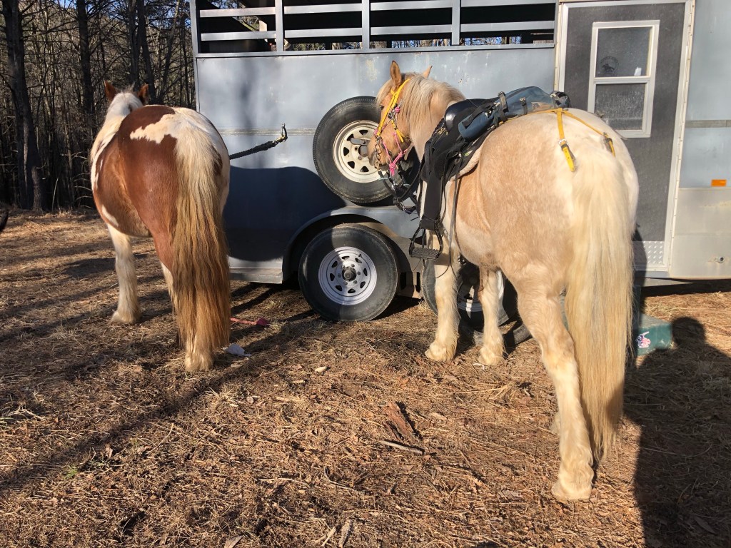 On previous rides ponying Neville, I have let him sort of do his thing as long as he kept with me and was not annoying. I even have let him off lead a few times for a short span to follow along, and lead the ride as he pleases. For the most part he has been good at staying with me and not being obnoxious to lead but he has been nippy and has irritated Simon. On this ride I decided it was time to work on leading properly. So I worked to keep his head near my knee. If he fell behind or got ahead I bopped his lead until he was back in place. If he tried to nip at Simon I bopped him again. There was a lot of licking and chewing. And it didn’t take long for him to start walking in heal position. We finished the day with very strong and consistent walking but his trotting was a bit hit or miss. Sometimes he maintained it well and other trot stretches he got behind and struggled to catch up and then maintain his position. I am looking forward to continuing this exercise with him.