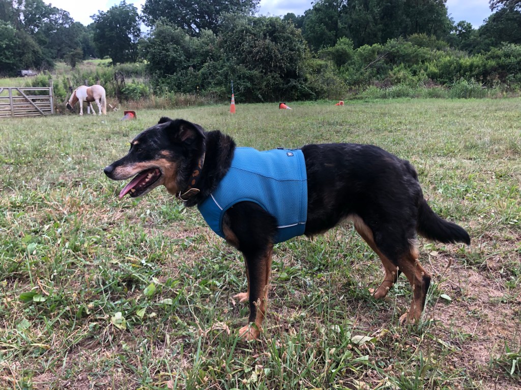 Tuff Rider Vented Technical Shirt – I got this one in navy blue with white off of Amazon for a rather respectable price of $30. The white under the arms is very thin, almost like a veil. Sort of a rough scratchy, vs thin and flowy material but it does appear it would breath very well. But the rest of the shirt is thick. Very thick. Like its not going to breath thick, so that your only air flow is under the arms. I do like the cut and it fit pretty true to size. I think with the thickness I would want to size up one size just to add some airflow, but I do not think that would be enough to reach the cooling effect I am looking for.