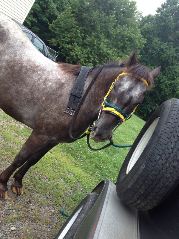 A few days ago I decided call Mad Tack in Madison, Virginia, where I heard they have a large selection of inexpensive used saddles.  I talked to Samantha on the phone and told her my saddle situation.  And sure enough. She raddled off a good selection of possible saddles that fit my criteria.  He suggested I bring Poe with me and we could try saddles to my heart’s (butt’s) content.