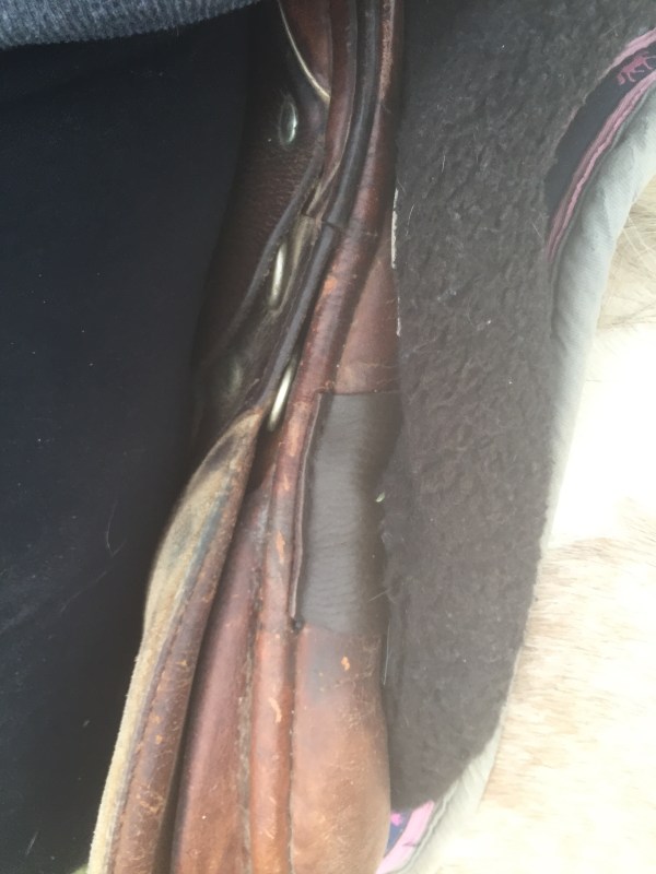 This time I needed a patch put on the underside of one knee roll and a stirrup leather keeper replaced.