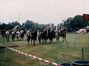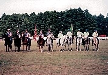 On my left, holding the flag, is Collen Rutledge. She was Colleen Morris in those days. Now she is a rather famous upper level event rider.