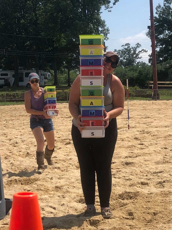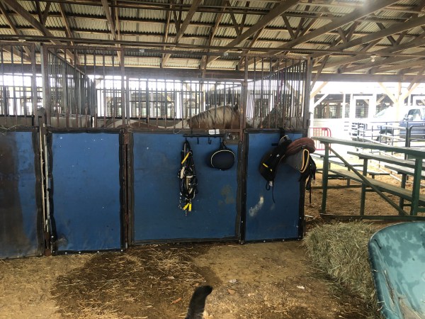Obstacle 9: Walk up to the bucket that was hanging off the tow hook on the back of the wrecker, stop, and collect a carrot, then walk back. The key here was your horse could not mess with the bucket and it was a full 4 points off if they stuck their head into the bucket. It was one point off if you did not stop fully.