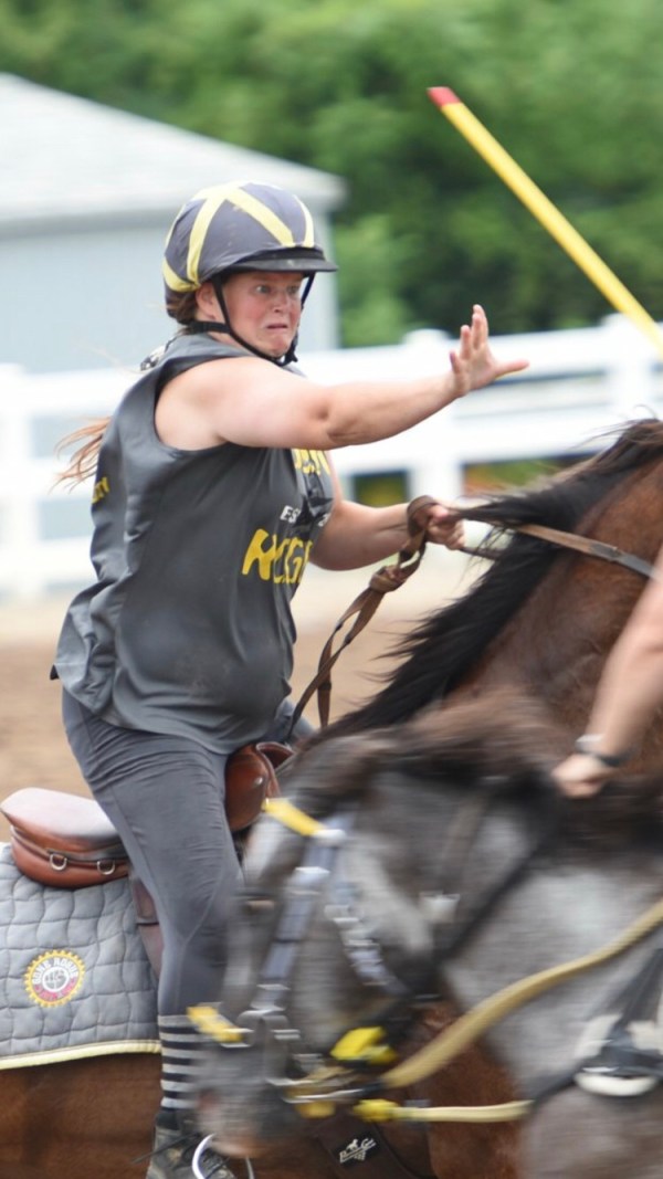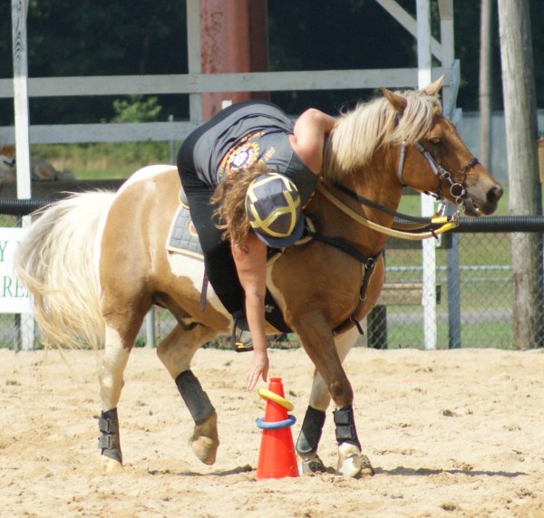 Jenny again crushed this one. She did pull King to the side as she mounted which is what I think cost her the point. I think this was just a bit of his youngness showing.