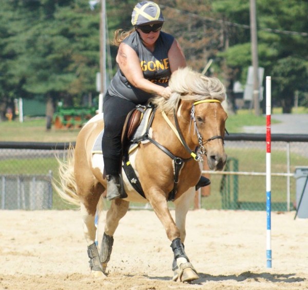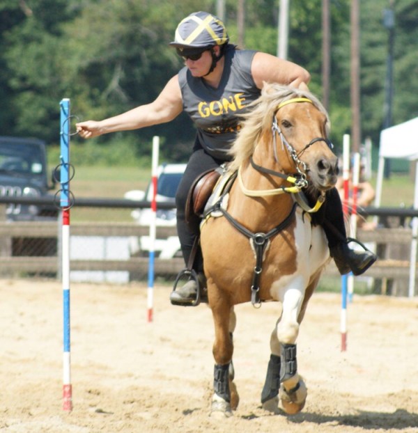 Obstacle 8: Ride through the barrels. This one was easy, although the barrels were super close together and the lights were flashing. So a good test for a spooky horse.