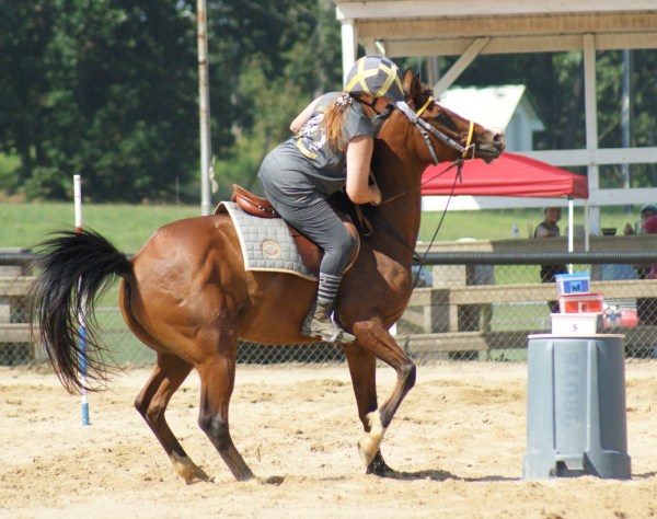 This should have been a good one for Simon and I, but nope. He was too full of himself to even get backed up to the barrels. This is the highest he has ever reared too, which is just silly. Doesn’t he sort of remind you of that cartoon purple elephant in a tutu here (Disney’s Fantasia)?