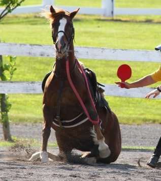 Saturday morning after an outstanding camp breakfast prepared by teammate Linda, we started our first session at 8am. We whipped through 11 races, when we had a scary pause, as green pony rider, Leah, had a mishap. She turned too tight and set her pony off balance. He fell, and landed with her under him. It was scary, he just laid there with his legs up in the air like a turtle on its back, with Leah under him. Luckily one of Leah’s teammates and an assistant referee were able to roll him off of her. Also we were lucky an EMT was on grounds and able to check Leah out.