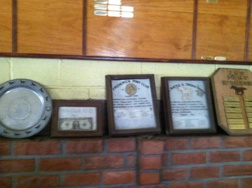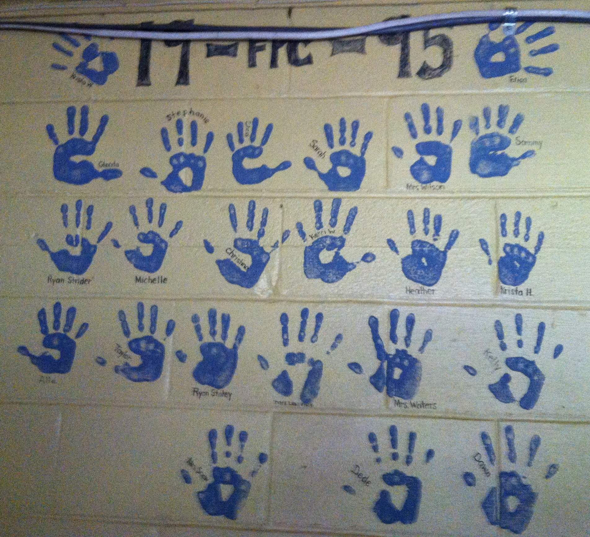Inside the clubhouse I found the first set of hand prints that were put on the wall, in 1995 during pony club camp. I was a counselor at the time and my hand is on the left of the year.