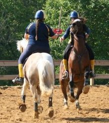 By the end of session two I was in a lot of pain. Not going to dance around that. The last race was ring the cone, and I really did not want to play. Well I *wanted* to play, but I really should not have and I really did need to sit it out. By that point it hurt to sit up at all and I knew I was pushing myself too far. Val was slated to sit out that race, it being her one and only nemesis, and she offered to step in for me knowing it was the best move for the team. But Averi was not feeling it and said she needed out. So I agreed and I went first. I had a clean passable run, and was heading home when they blew the whistle. The wind was blowing the rings off the poles. Drat. So we reran and my rerun sucked. I got my ring pick but when I got stopped at the cone the wind whipped up and blew my ring off my sword. Fearing that getting back on would really be problematic with my stupid groin issue I attempted to collect the ring mounted, but lacking success, I dismounted. I did manage to remount, although it really did hurt and I am sure I added to the length of my recovery with that one move alone. Sigh.