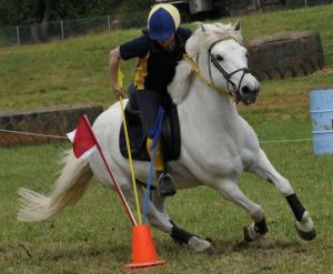 This competition weekend turned out to be a hot and sunny one, which is a little daunting to riders like myself that don’t fare well in such conditions. But it wasn’t raining so that’s a bonus. We also rode on grass, which I personally love but is a mixed bag for some. Grass does tend to be cooler, because it doesn’t hold and reflect the heat back up like all weather footing does, but it is also not “all weather” footing. I ride in grass at home so I get lots of practice on it, and I also have my pony in 4 shoes with borium and that does make a difference because he has more grip than the standard barefoot pony. Games was almost always played on grass pre 2000 but the current precedence is to ride on footing in the US so most riders and ponies are not accustomed to compensating for the changing conditions on grass, like slowing up a tad and balancing a pony around sharp turns when its slick.
