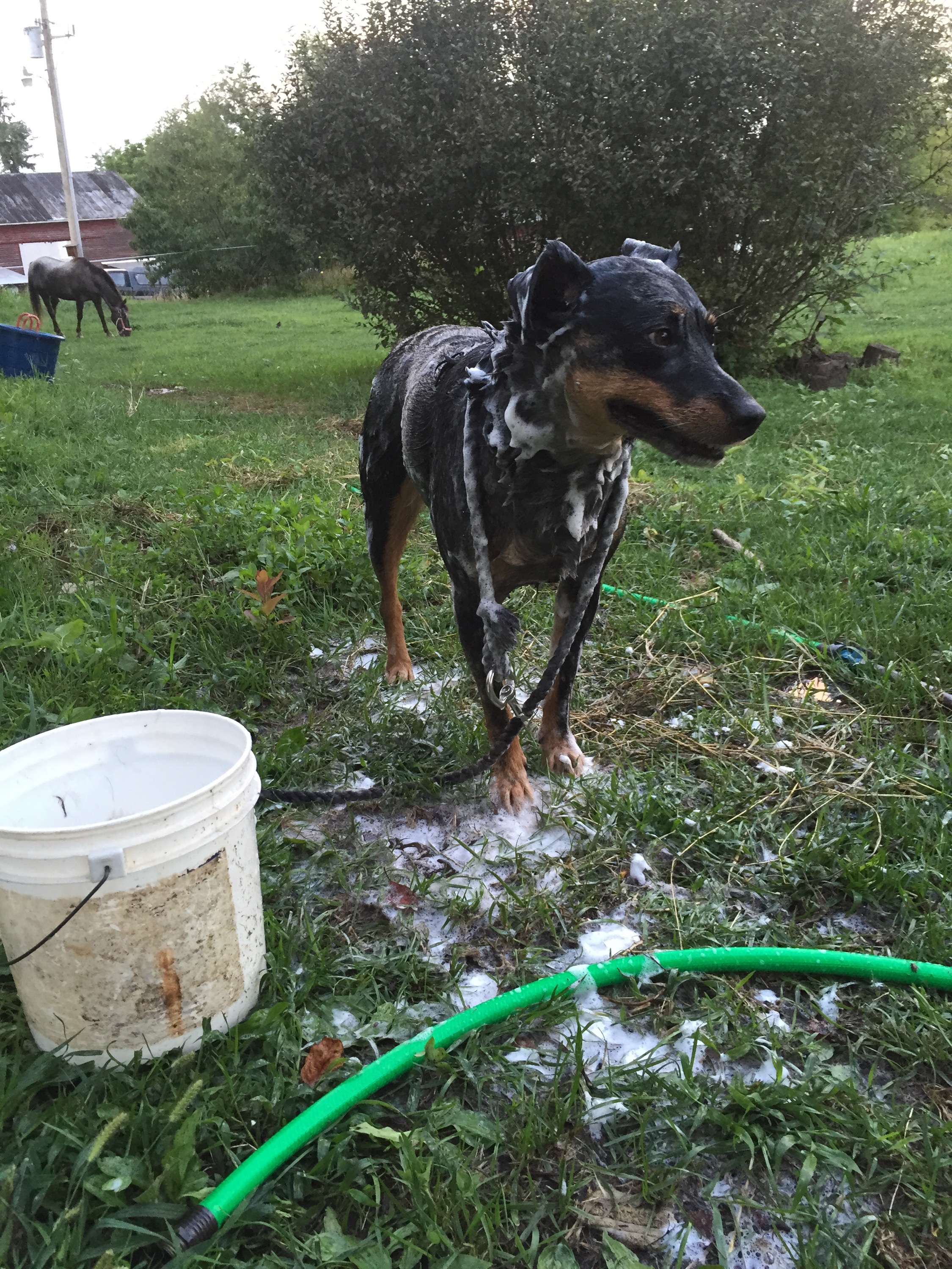 Sadly it appears Daisy was sprayed in and on her mouth. She has skunk breath. The face is so hard to wash. She is tolerant and well mannered so I got my scrub on and finished up with just enough time to feed ponies before dark.