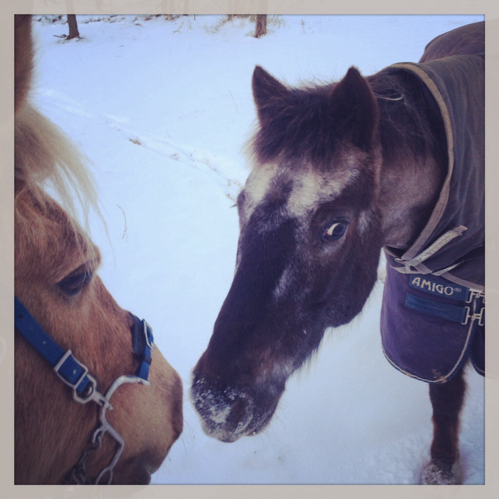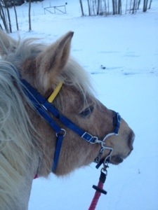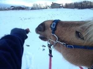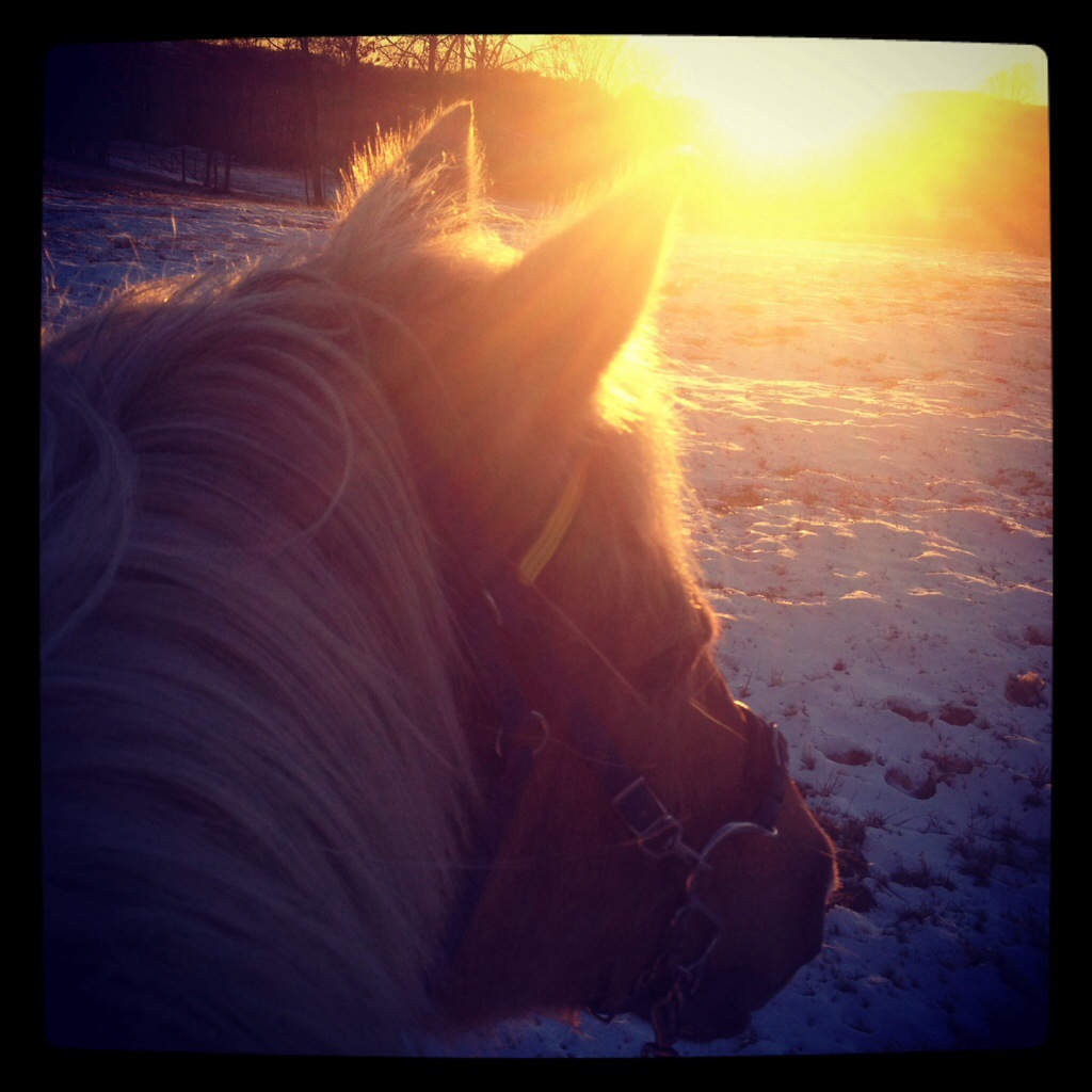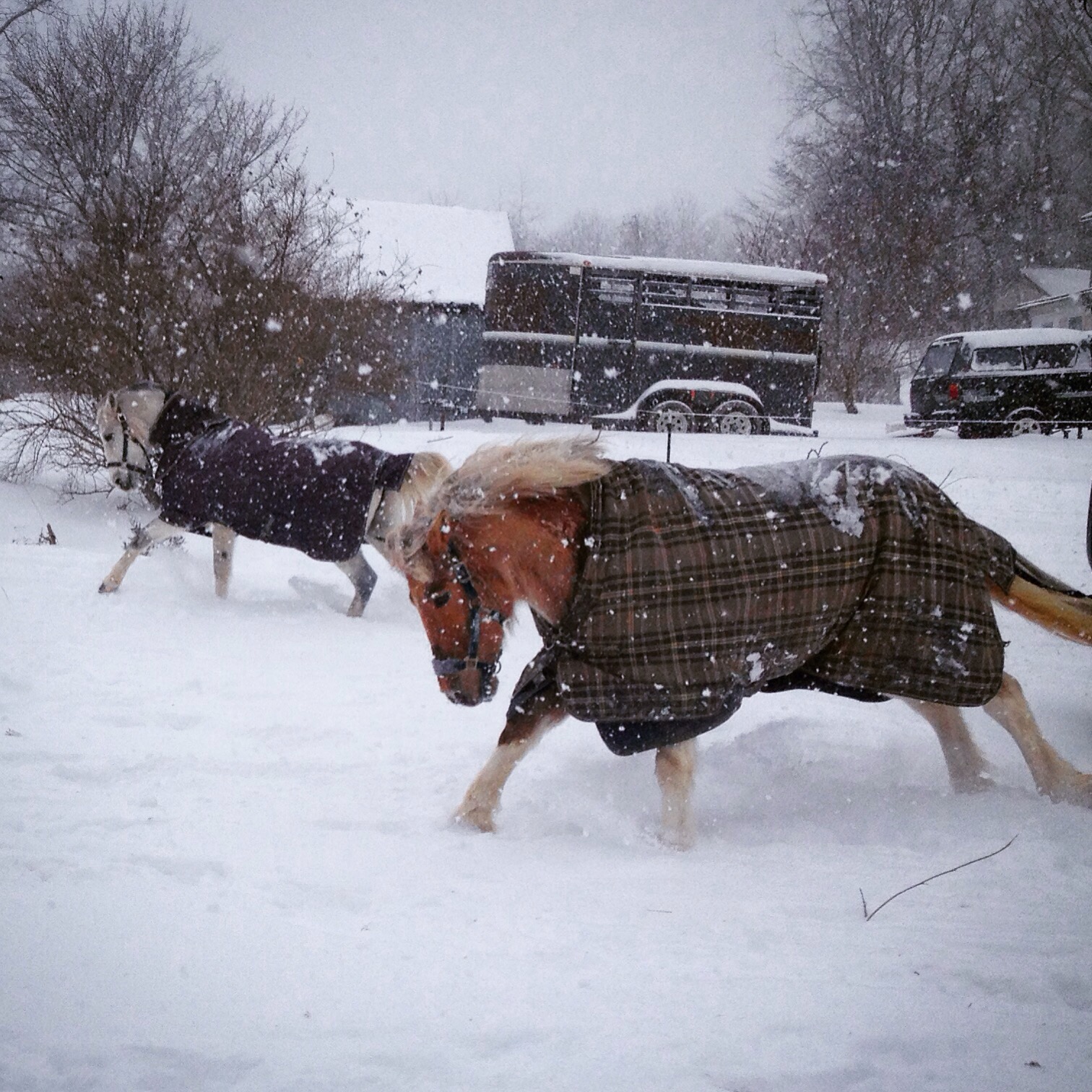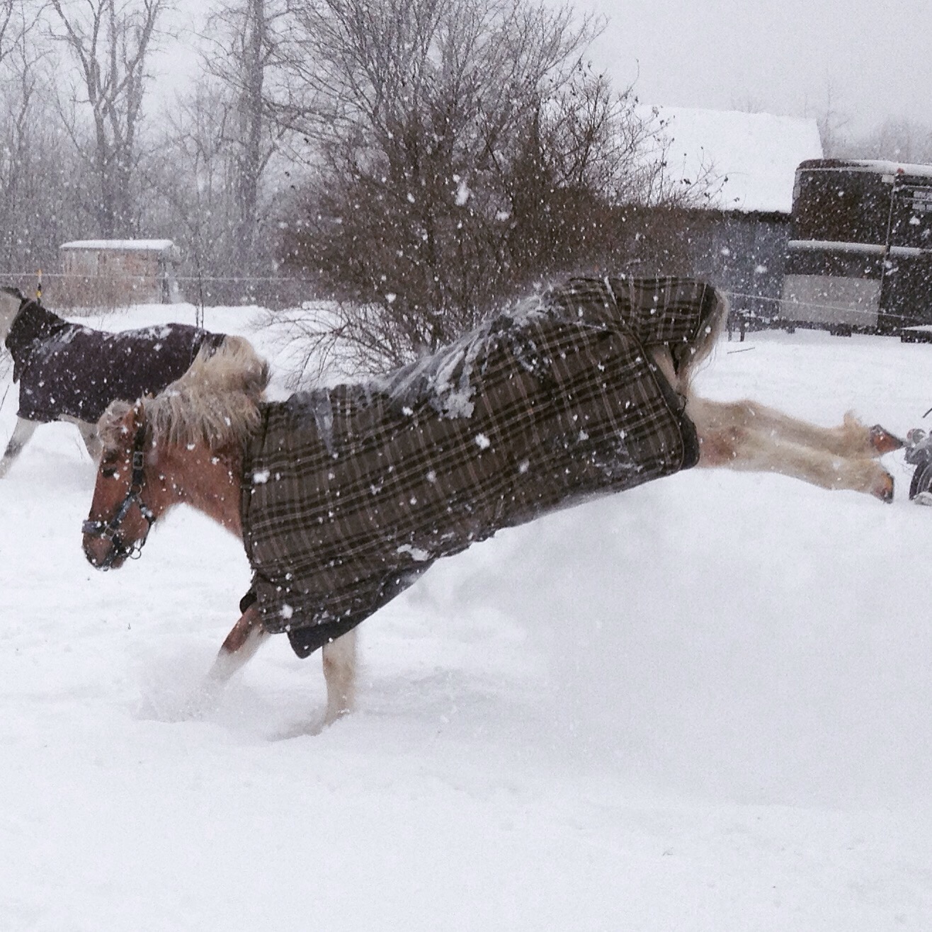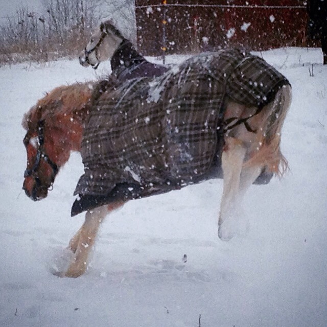 We have about 1 1/2 feet of snow right now but I do not have skis, or friends with skis, so we decided to try pony sledding instead.